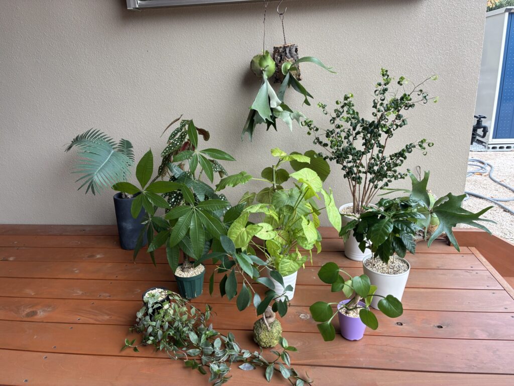 植物たちにストレスがかからないよう、少し陽が昇るのを待ちウッドデッキへ移動。