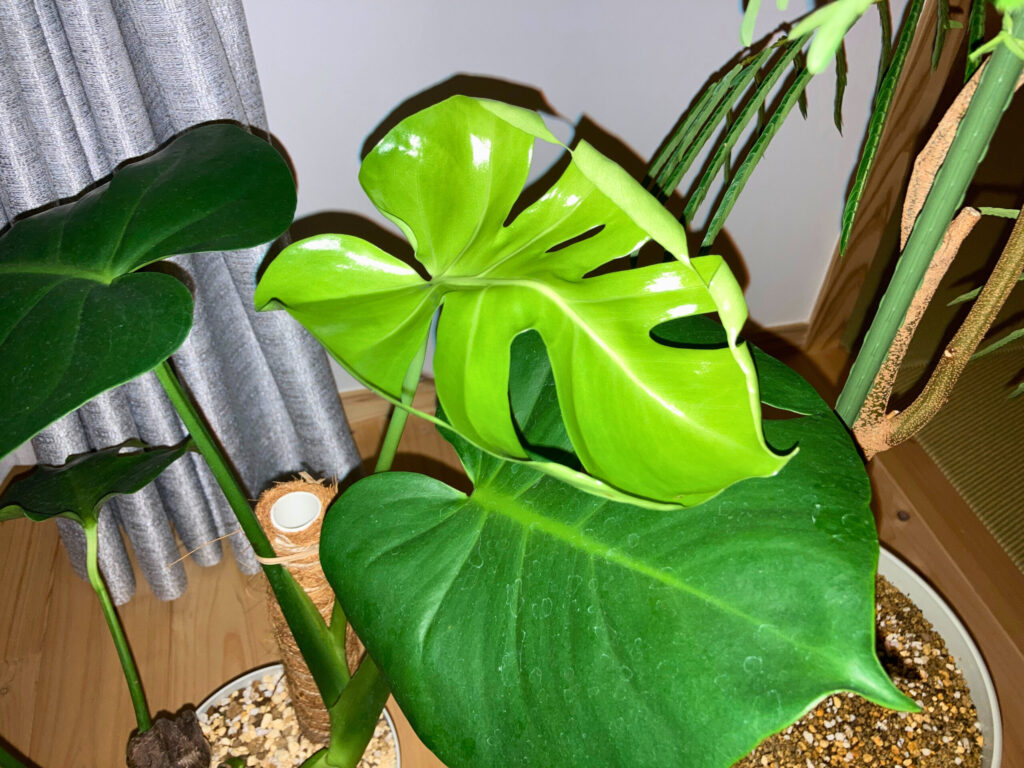 斑入り部分は光合成できず、通常のモンステラより成長はマイペース。