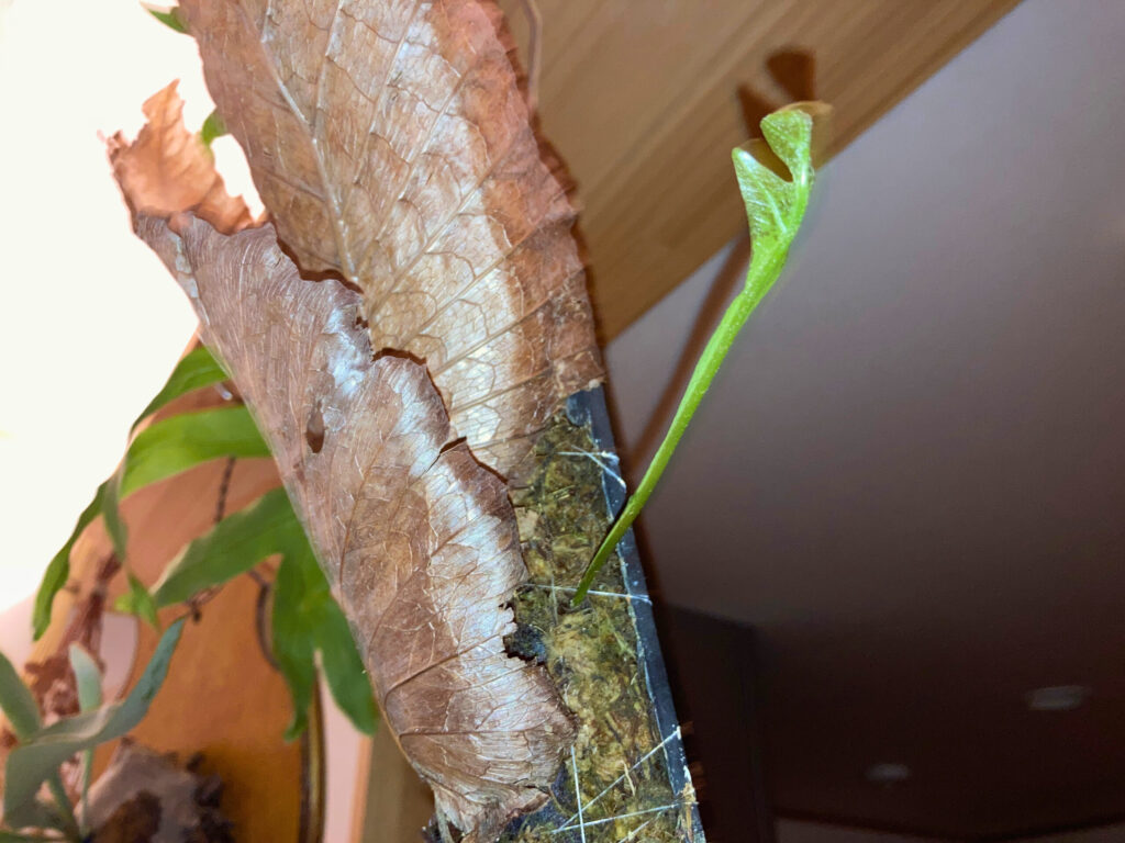 新芽がピンと上向きになり、どうやら胞子葉のよう。